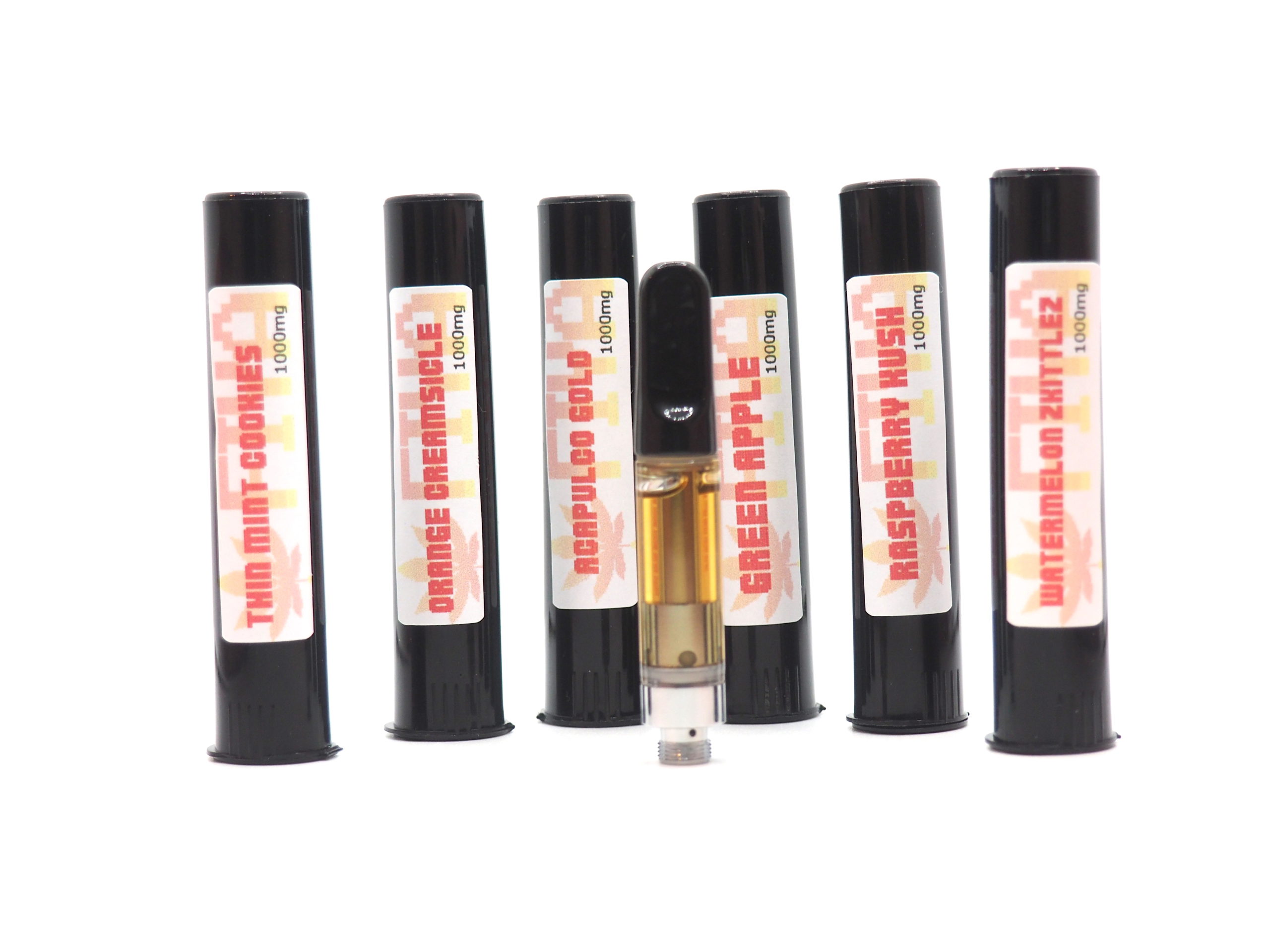 Each FIYA vape pen cartridge comes pre-filled with 1,000mg of THC. We also sell 500mg cartridges, as well as FIYA Re-usable Vape Pen Kits (battery, charger, and cartridge).