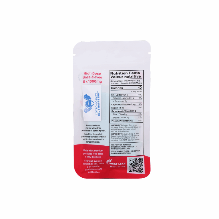 Prepare to experience a flavour explosion with our brand new Treat Leaf – HIGH DOSE! These are some EXTREMELY potent cannabis edibles packed with delicious fruit taste and our highest dose of THC per gummy to date. Each gummy contains a precise dose of 1000mg of THC, perfect for experienced cannabis enthusiasts looking to REALLY kick it up a notch.